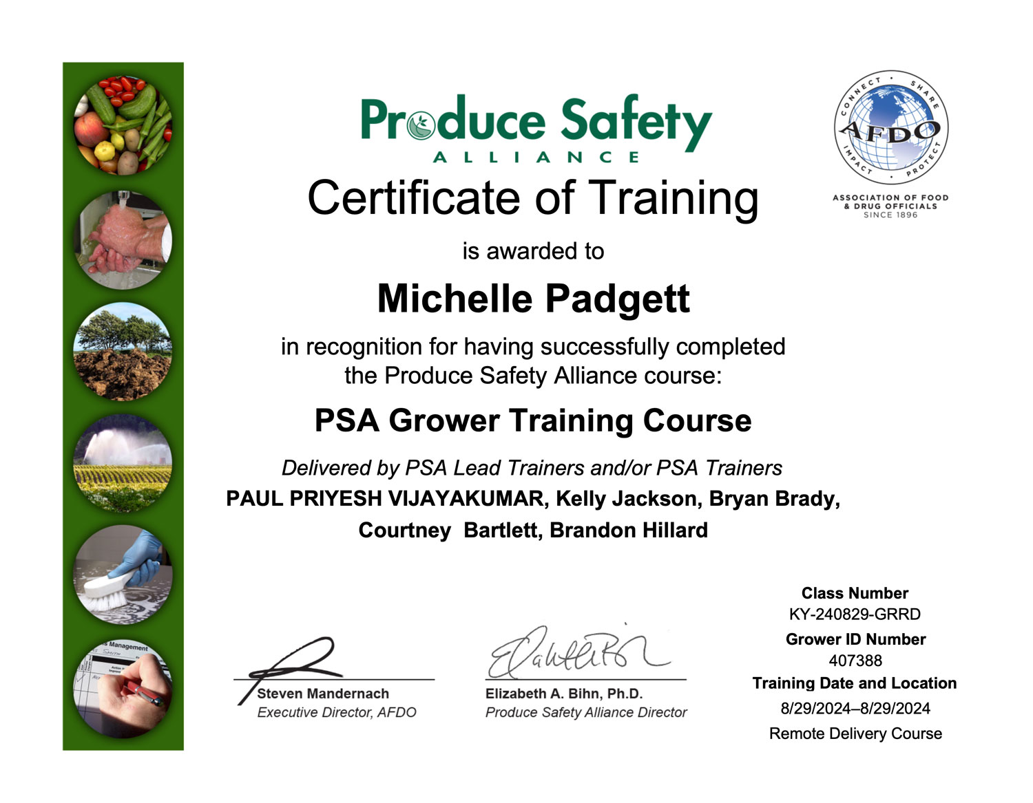 Upon completion of the training, participants receive a certificate from the Association of Food and Drug Officials (AFDO), which verifies that they’ve met vital food safety training requirements.